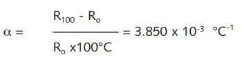R100 is the resistance at 100°C, R° at 0°C. The resistance change over the range 0°C to 100°C is referred to as the Fundamental Interval.