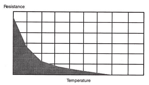 The electrical resistance of a NTC (Negative Temperature Coefficient) Thermistor, decreases non-linearly with increasing temperature.