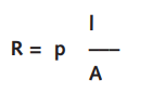 where R is resistance, l is length of a uniform conductor, A is cross-sectional area, and p is resistivity.